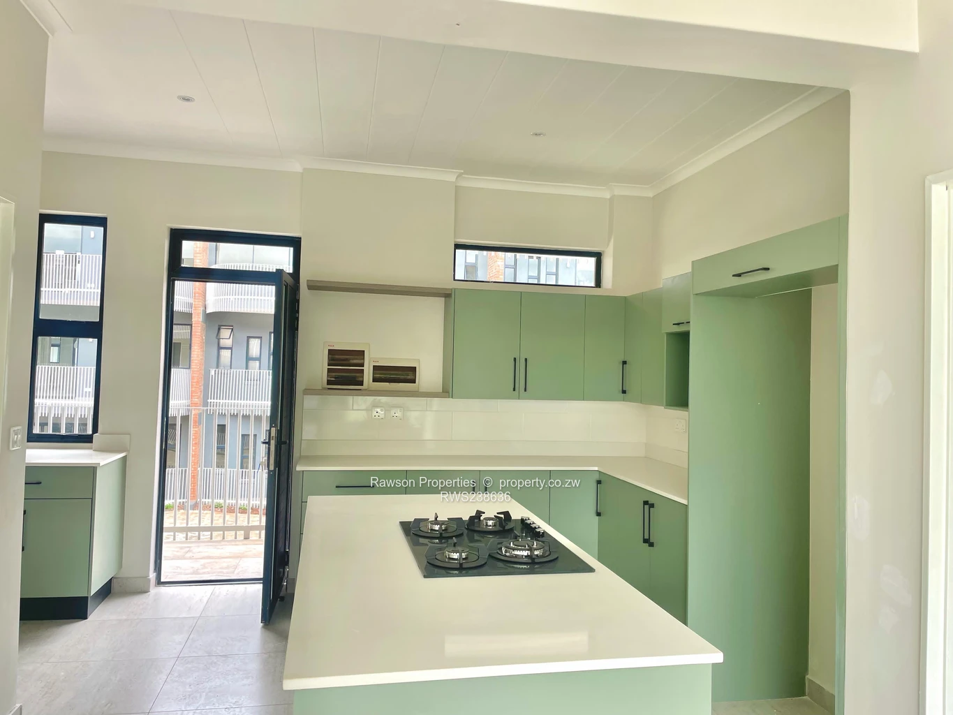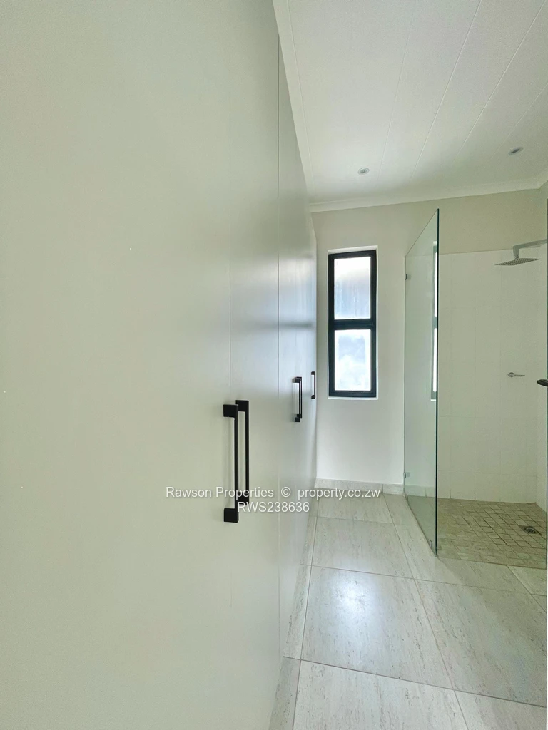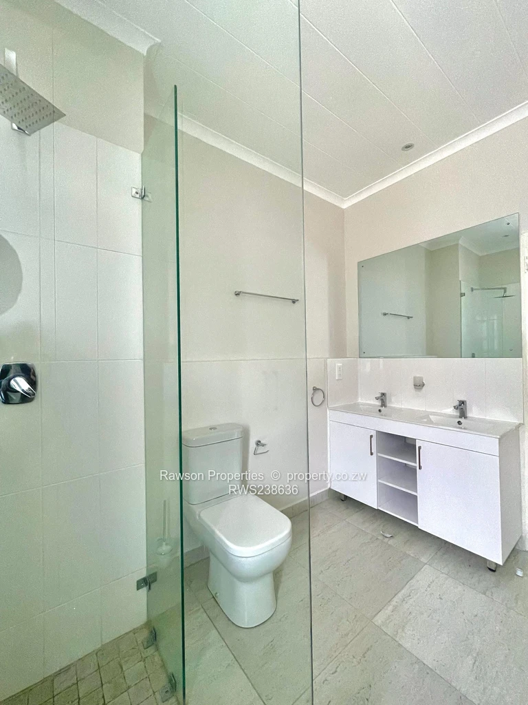 neutral finishes and tiled floors that flood the open-plan living and dining area with natural light. The stylish kitchen features mint-green cabinetry, a breakfast island and a built-in hob—perfect for casual entertaining. Both bedrooms offer built-in storage and clean, modern en-suite and family bathrooms fitted with sleek vanities and glass showers as seen in the images. Practical built-in shelving and crisp, fresh paintwork create a ready-to-move-in feel. Ideal for professionals, a small family or investors looking for a low-maintenance property in a convenient northern Harare neighbourhood within easy reach of local schools, shops and services. Contact us to arrange a viewing and experience this well-appointed apartment in person.