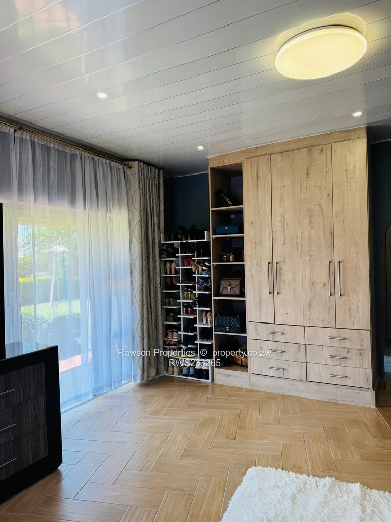 This beautifully maintained home offers refined comfort and space. It features 4 spacious bedrooms with built-in wardrobes, including a main ensuite with a walk-in closet and sliding doors opening onto a lush, manicured garden. The home boasts 2 common bathrooms, a modern fitted kitchen with premium appliances, pantry, scullery & laundry area.Additional highlights include a reliable borehole, double lock-up garage, and secure wall and gate. Perfect for discerning buyers seeking style, functionality, and serenity in one of Harare’s most desirable suburbs.